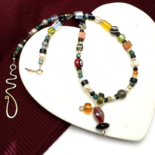 Rainbow Radiance Necklace – Multi-Bead Mix of Glass and Natural stone