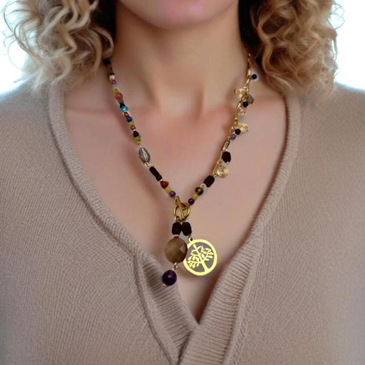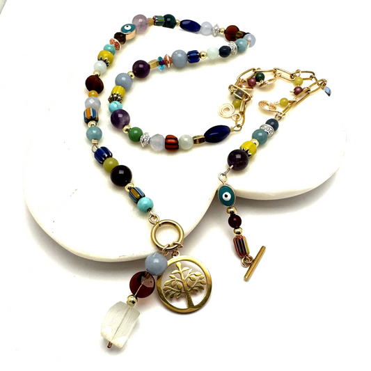 Elevate your energy with handcrafted necklaces made from healing semi-precious stones and artisan glass. Unique, boho-inspired jewelry designed to balance beauty and intention