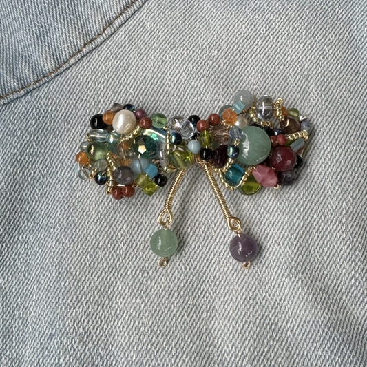 Retro Style Beaded Bow Brooch