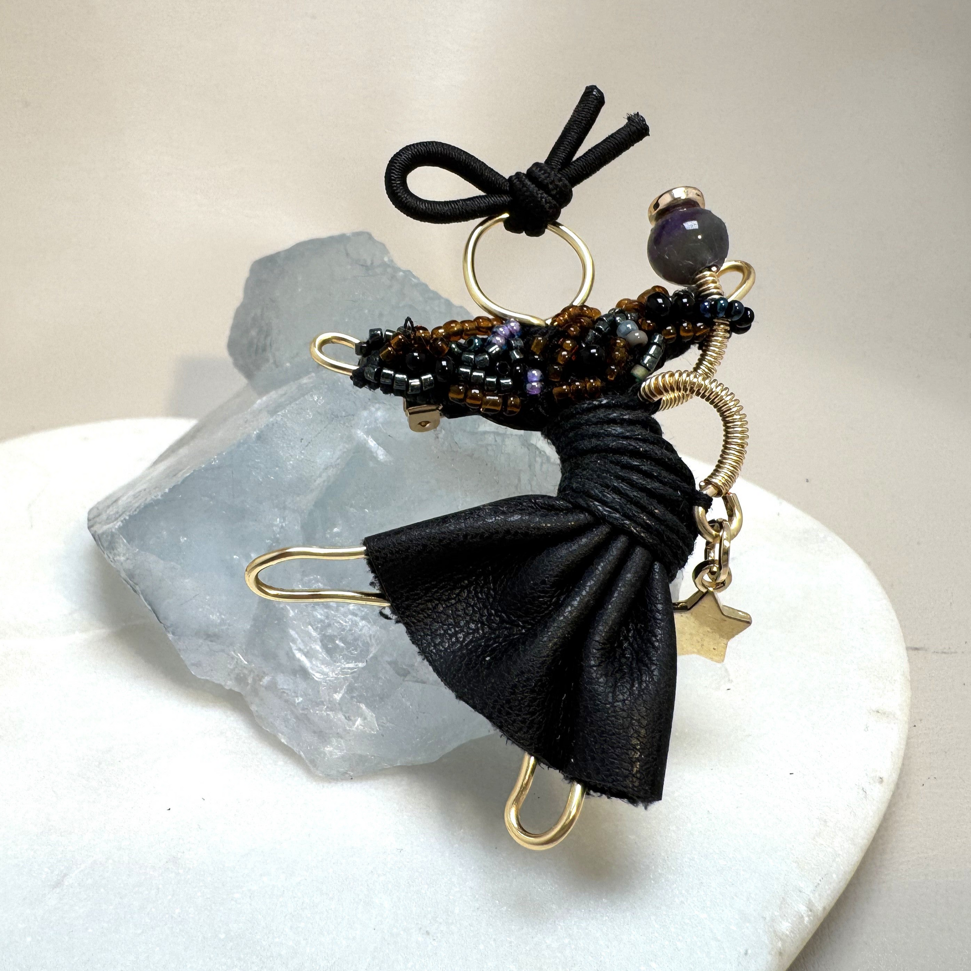 Handmade from twisted wire, vintage ribbon, and carefully chosen beads, each Pixie Pin is a tiny celebration of individuality and imagination. These whimsical brooches are designed to uplift and empower, reminding you to embrace your spirit and style with boldness, playfulness, and heart. Clip one to your jacket, scarf, bag, or hat for an everyday dose of wonder.