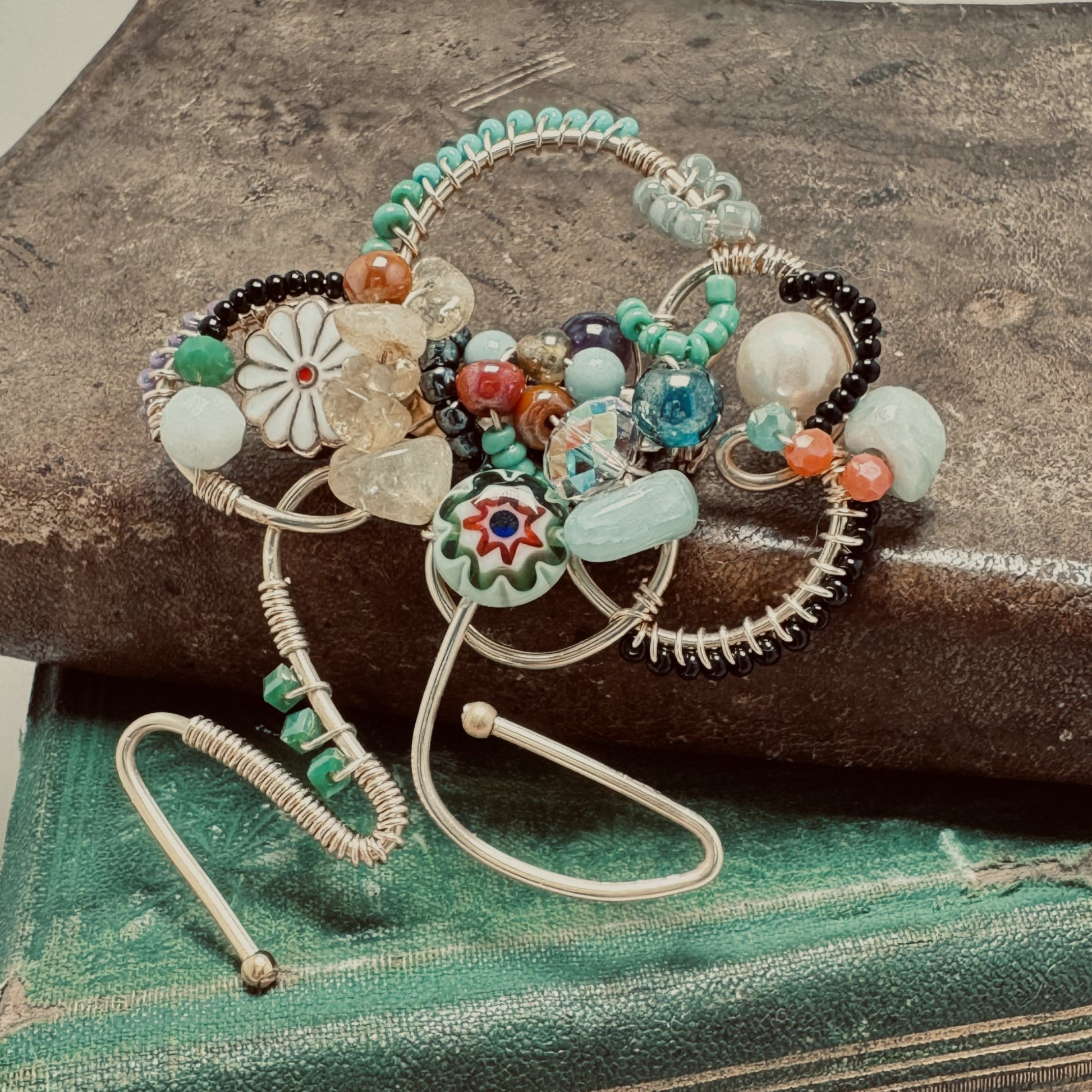 - Mixed glass and semi precious beads